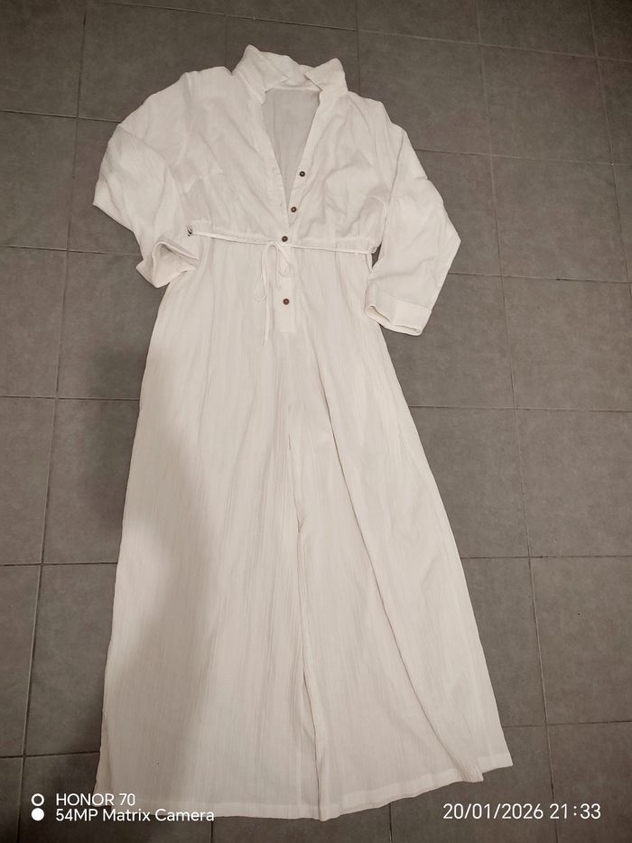 Portee une fois Longueur totale 156 cm Longueur taille cheville 108 cm Longuer epaule taille 44 cm Ceinture élastique de 49 a 70 cm Largeur à plat sous les aisselles 62 cm Matiere fluide et extensible #geliscyrilletaille46 #geliscyrilletaille3XL RefCA3