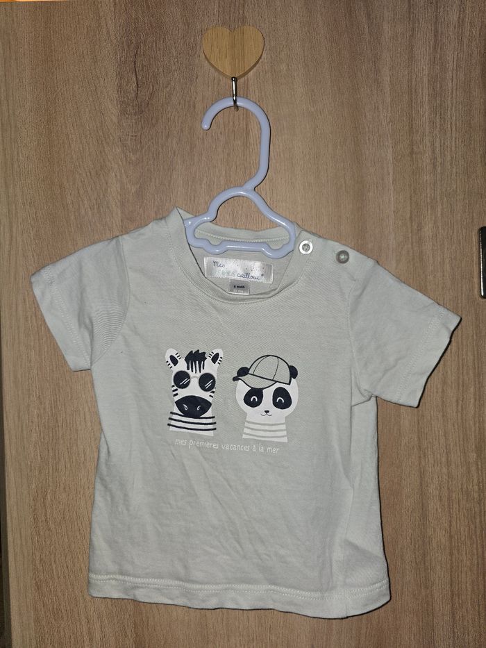 Tee shirt avec animaux vert "Mes premieres vacances à la mer" Taille : 3 mois, 59 cm Très bon état