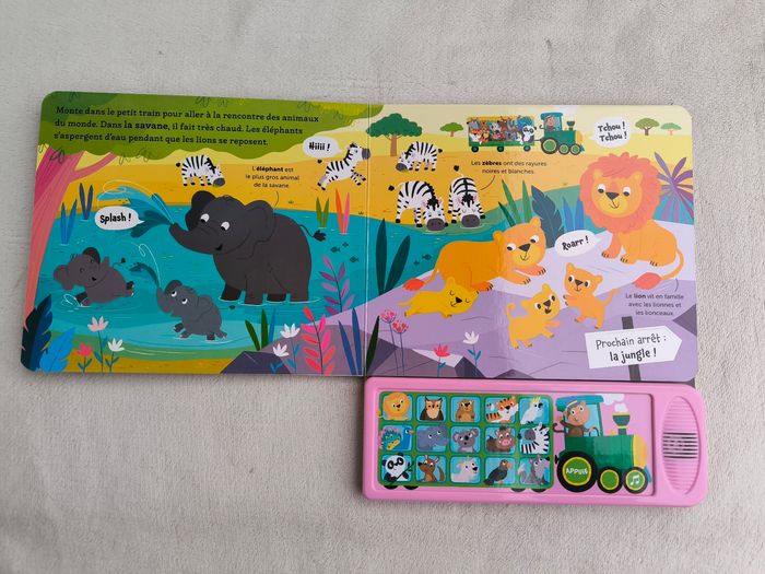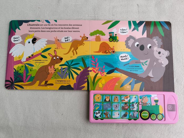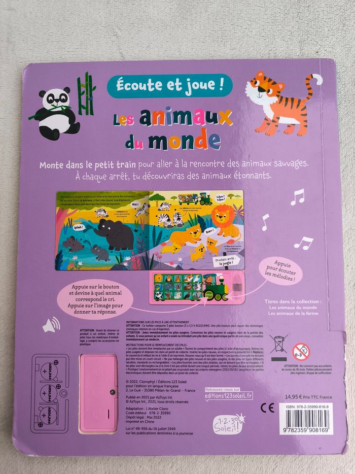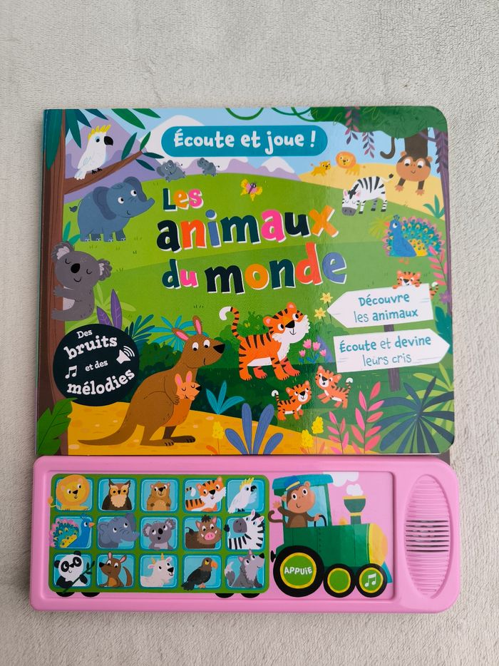 Livre sonore Écoute et joue : Les animaux du monde Éditions 1.2.3 Soleil • Pages cartonnées • Découvre les animaux, écoute et devine leurs cris -> Dans la savane : lion, éléphant, zèbre... -> Dans la jungle : singe, paon, tigre... -> Dans la forêt : sanglier, hibou, loup... -> Dans la montagne : panda, chèvre, marmotte... -> L'Australie : cacatoès, kiala, kangourou... • Intérieur du livre en très bon état Fonctionne Piles non incluses En très bon état #evelyne_livres
