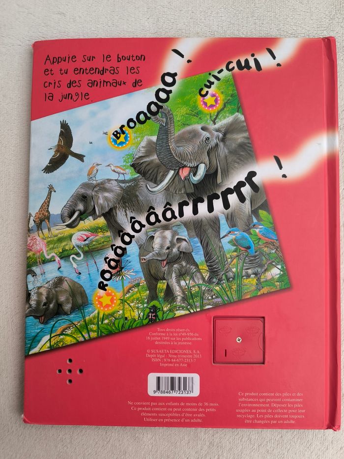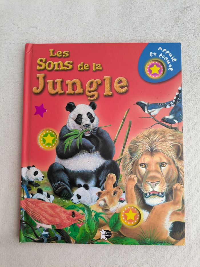 Livre sonore Les sons de la jungle Éditions P'tit Loup • Cris d'animaux : -> Oiseaux, éléphant, lion, chimpanzé, puma, ours... • Intérieur du livre en très bon état • Coins abîmés Fonctionne Piles incluses à potentiellement changer En très bon état #evelyne_livres