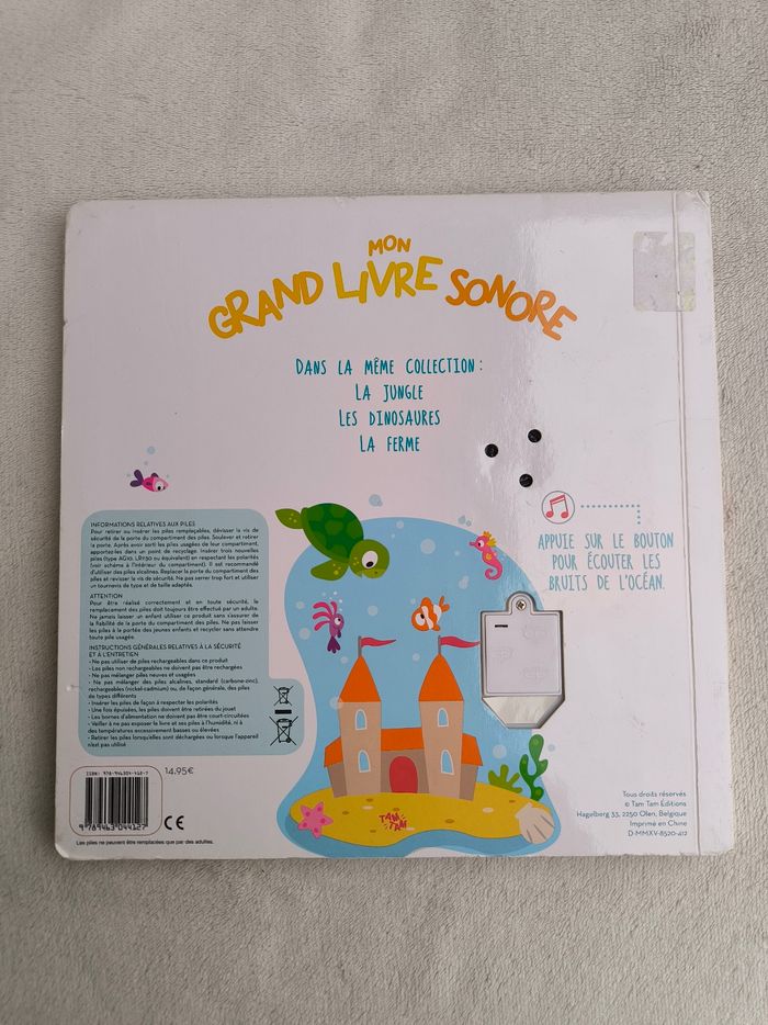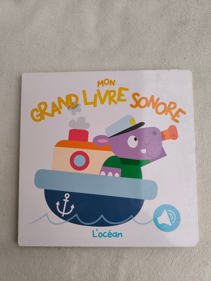 Livre sonore Mon grand livre sonore : L'océan Éditions Tam Tam • Pages cartonnées • Bruits : -> Bateau, dauphin, poissons, phoque, mouette • Intérieur du livre en très bon état • Coins abîmés Fonctionne Piles non incluses En très bon état #evelyne_livres