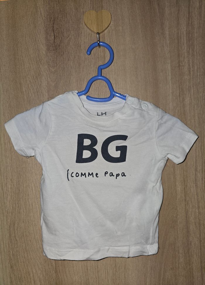 Tee shirt blanc "BG (comme papa)" Taille : 3 mois, 62 cm Très bon état