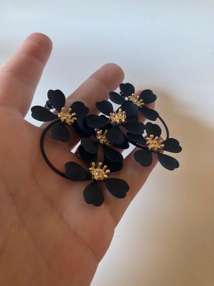 Boucles d’oreilles NEUVES pour femme forme de fleurs couleurs noir et doré  - photo numéro 5