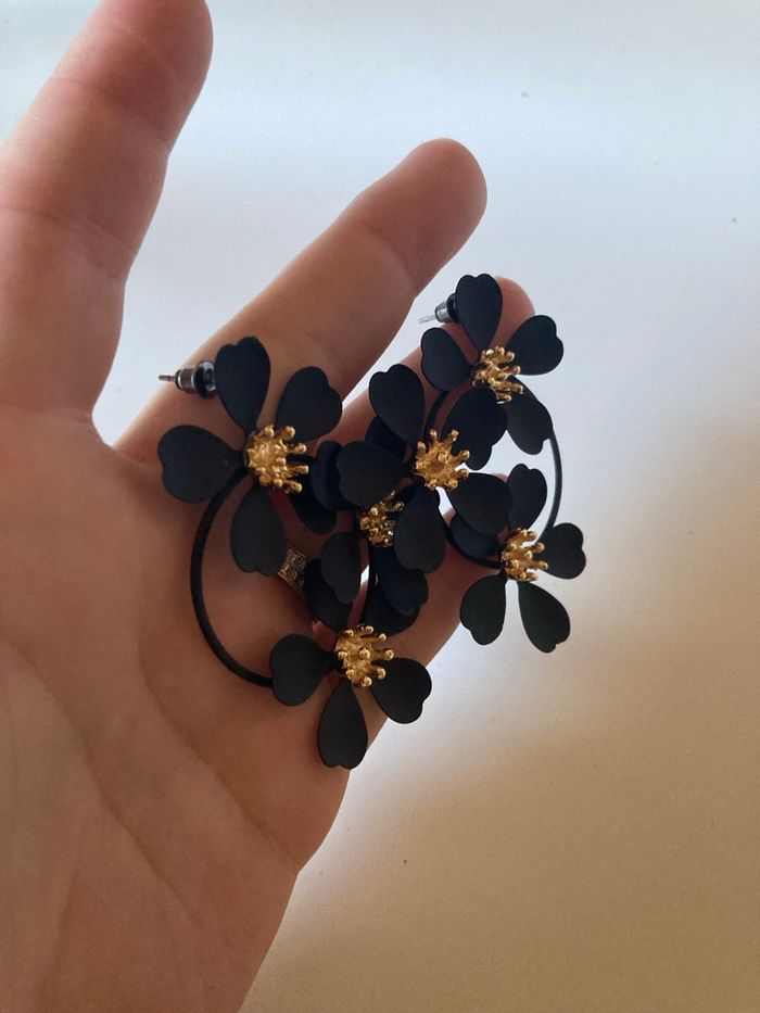 DRESSING PROPOSANT RÉDUCTIONS 💶😀 Boucles d’oreilles pour femme, en forme de fleurs. Pour oreilles percées. Couleurs : Noir et doré LÉGÈRES ✨NEUVES. Jamais portées.✨ Prix : 3€60 Je dépose DANS LA MESURE DU POSSIBLE les colis 📦 le lendemain du paiement. 😉 MAIS SI CEST UN ENVOI URGENT, MERCI DE ME LE PRÉCISER ☺️. N’hésitez pas à jeter un coup d’👀 à mes évaluations. 🙂