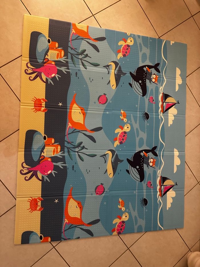 Vend tapis d'éveil et de motricité neuf sous carton jamais déballé fournis dans sa housse de transport et carton fermé . Réversible motif ciel et mer ✨ Taille 180×150cm ep 1cm Lavable Pliable Antidérapant Matériaux Xpe non toxique 📦📭 Envoi rapide le jour même en après midi et en soirée !!! ⚠️ Ne pas choisir de livraison en locker carton trop grand ! ✨PRIX FERME✨ et imbattable 🫶