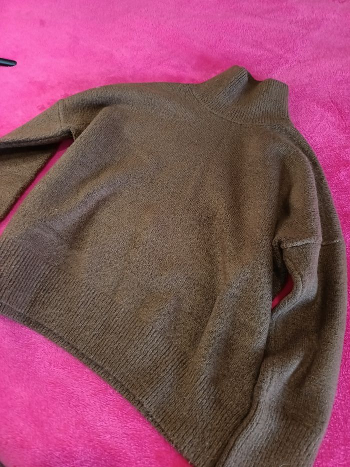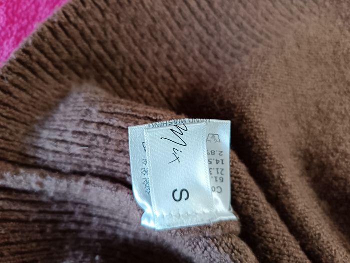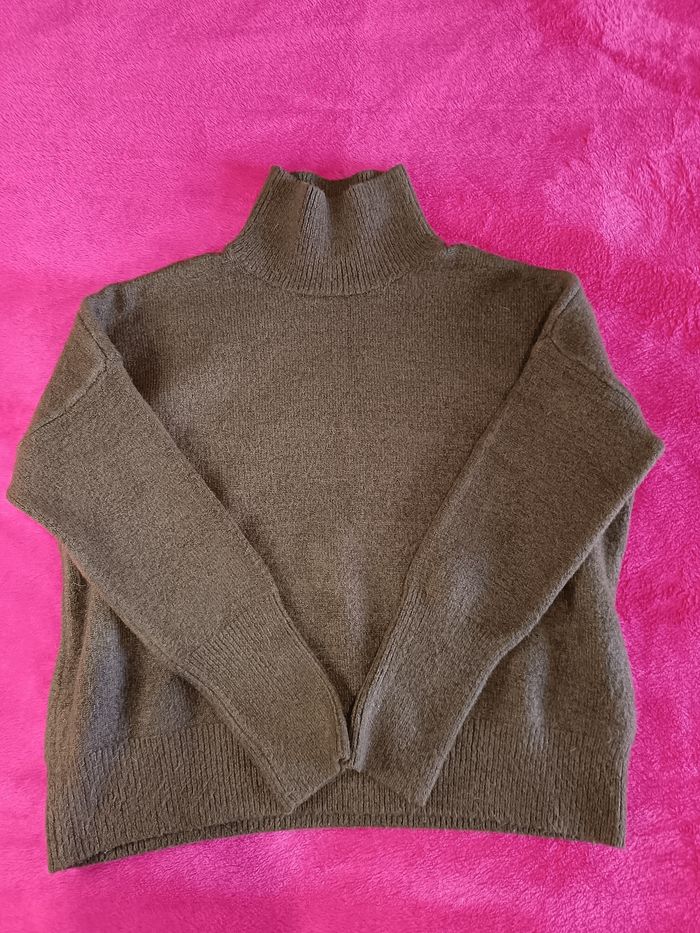 Pull Knit Mix de couleur marron foncé avec un col montant élégant. Maille douce et confortable, coupe légèrement ample avec des finitions bord-côtes. À noter : l'étiquette de marque derrière le cou est manquante, mais le vêtement est en excellent état. 🧶 Mesures: Épaules: 45cm. | Longueur: 50cm | Longueur bras: 55cm