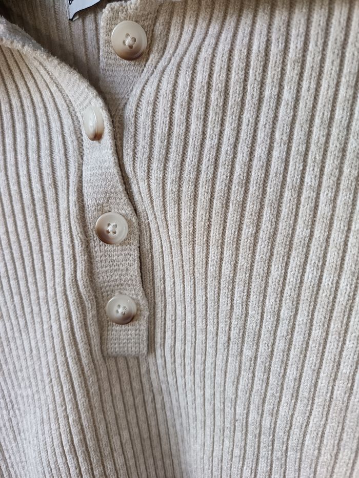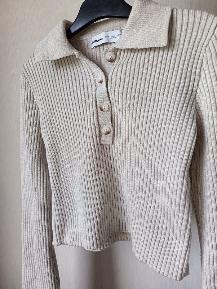 Haut court en maille côtelée de chez Bershka coupe tendance et col polo boutonné 🧶 Mesures: Épaules: 33cm. | Longueur: 43cm | Longueur bras: 60cm 📦 Envoi soigné sous protection adaptée 🚀 Envoi ultra-rapide sous 24h à 48h maximum