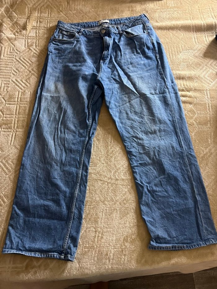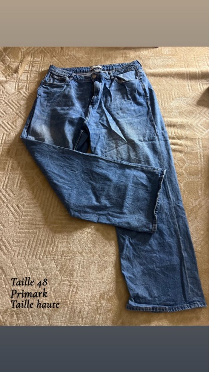 Jean taille haute bleu, porté 2 fois car la taille ne me convient pas, il faudrait juste le repasser sinon appart sa rien a signaler😀