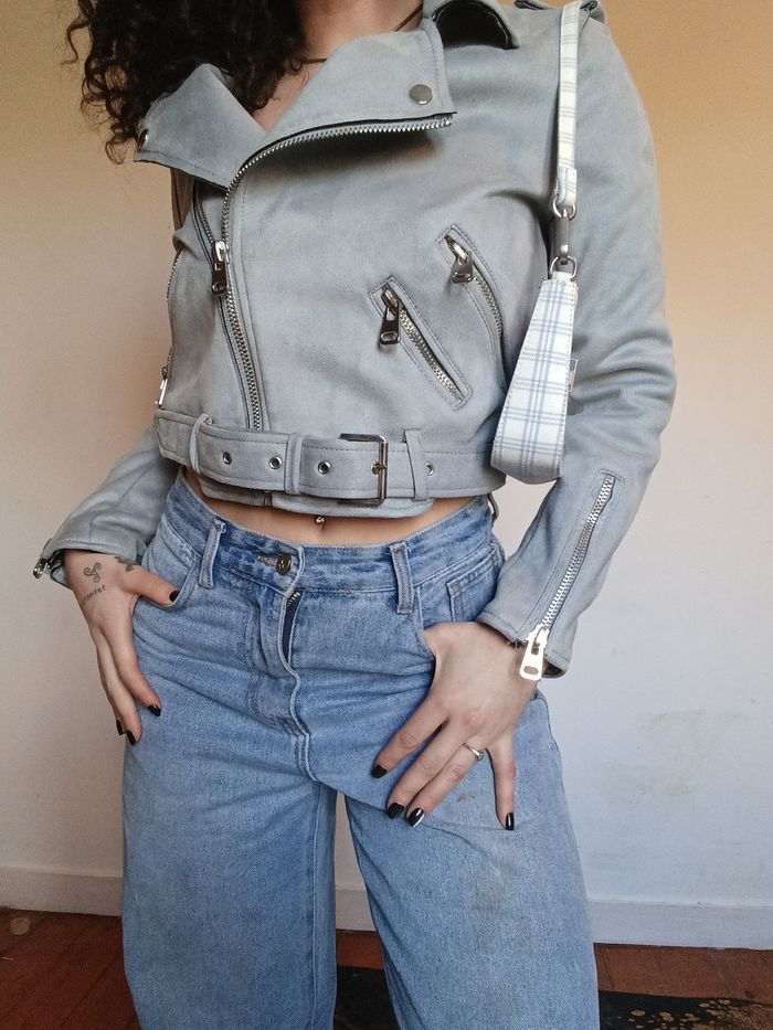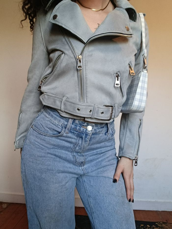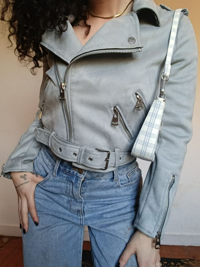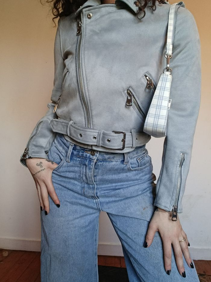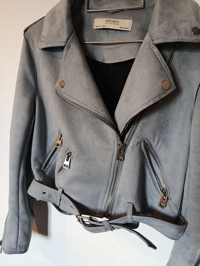 Veste biker Zara grise effet suédine – M - photo numéro 1