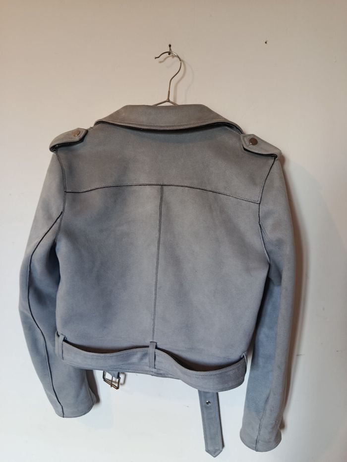 Veste biker Zara grise effet suédine – M - photo numéro 3
