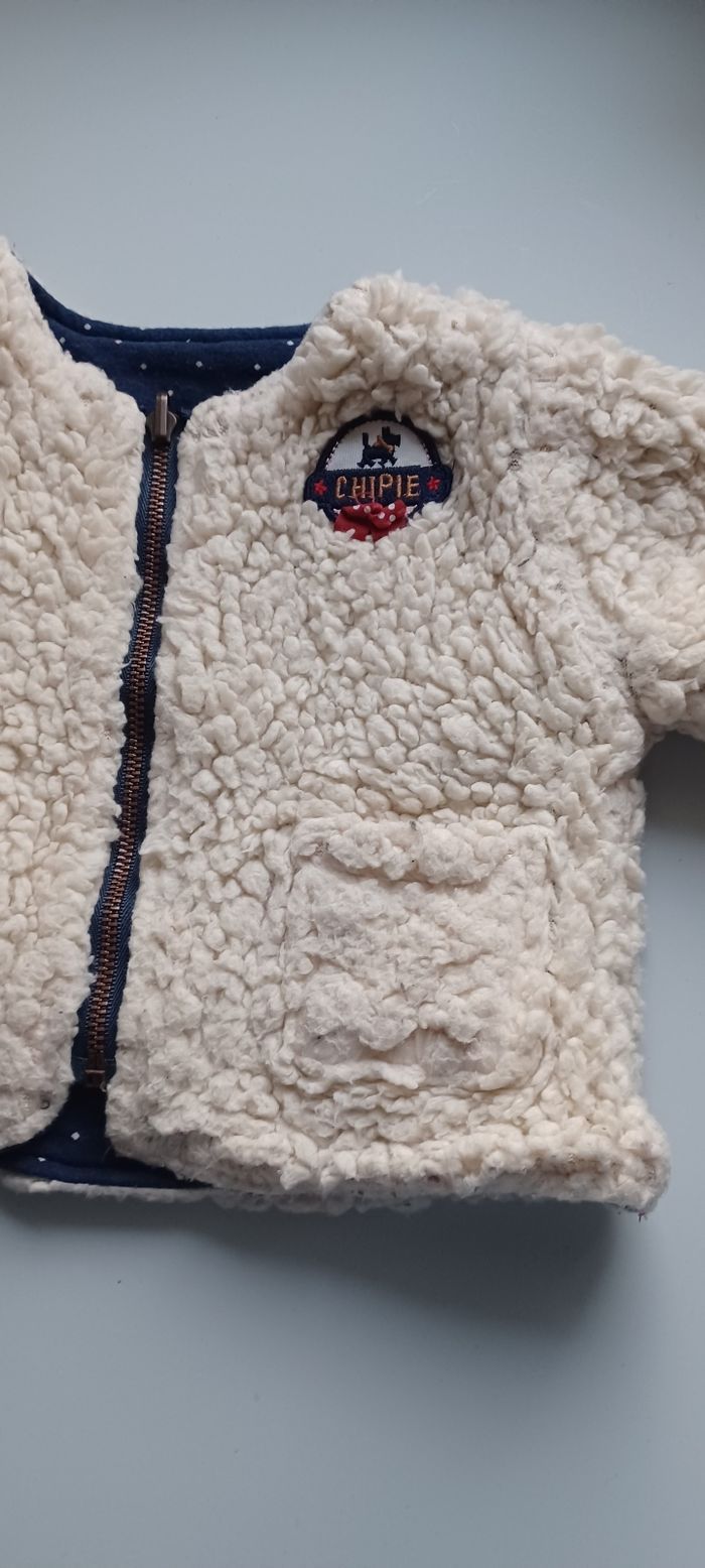 Très jolie petite veste réversible bien chaude bébé fille T 3 mois - photo numéro 1