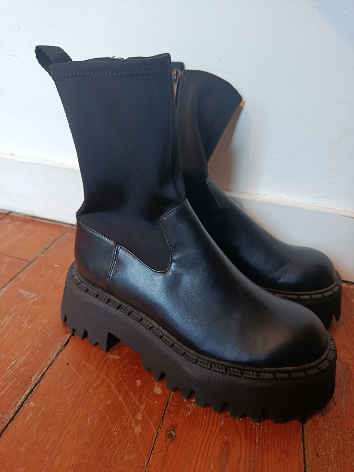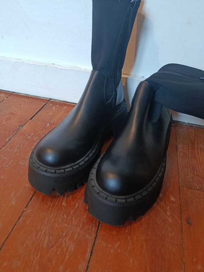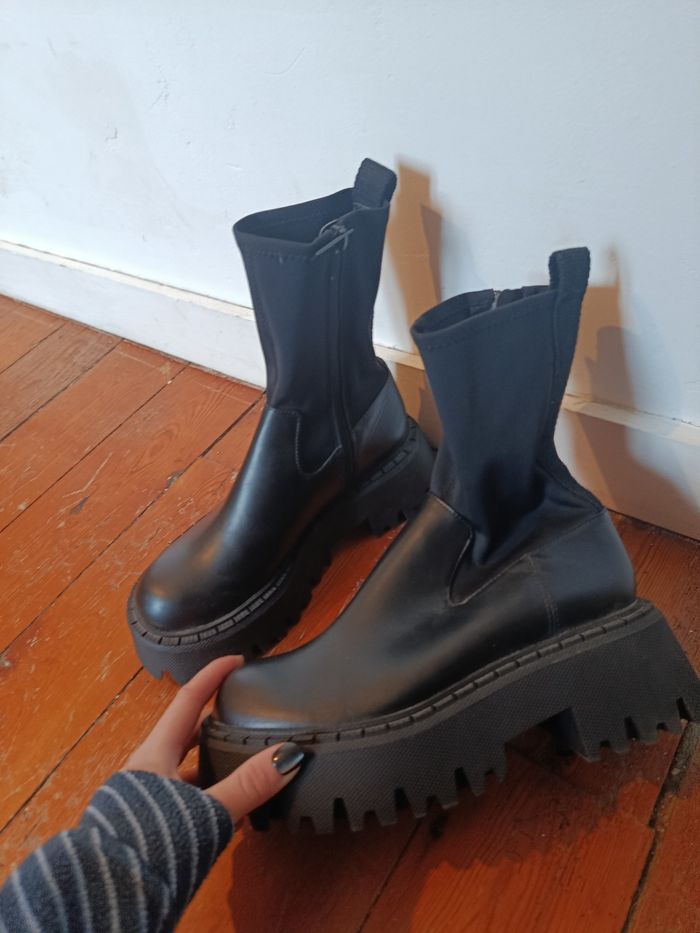 Bottines platforme Zara noires  chunky – T37 –  - photo numéro 1