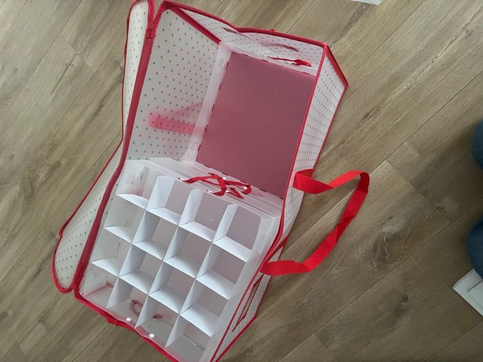 Boîte/ housse de rangement pour boules de Noël, système d’étages. 61x31x31 Peut contenir 128 boules. Neuf jamais servi Complet (je n’ai pas tout monté pour la photo)