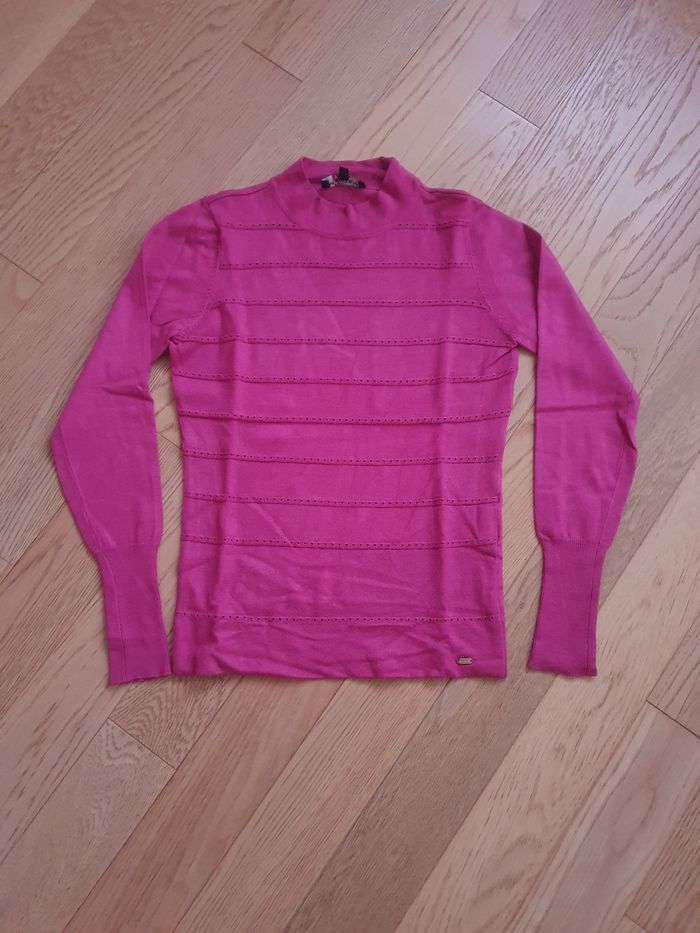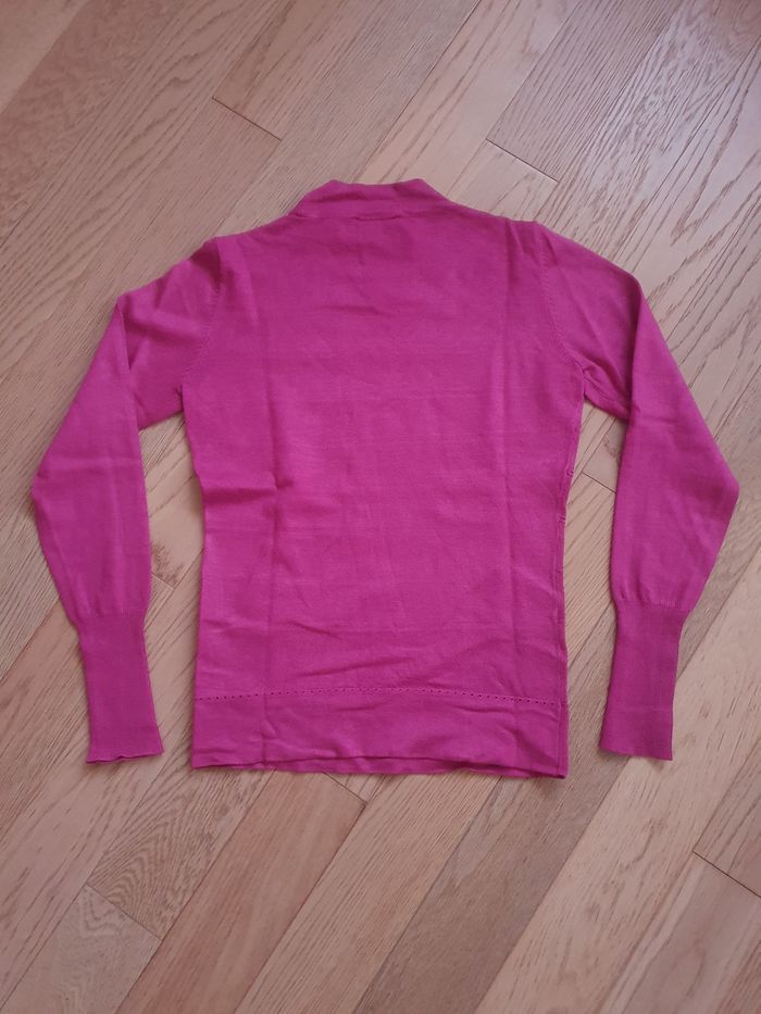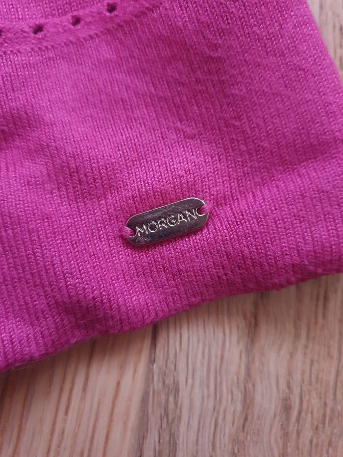 Pull pour femme, en très bon état - Marque : Morgan - Taille : S - Coloris : rose fuchsia - Col légèrement montant, coupe près du corps - Lavable en machine à 30°C - Composition : 80% viscose, 20% polyamide - Prix boutique : 35 euros - Maison non fumeur et sans animaux #elfedneiges36 #elfedneigesfemme