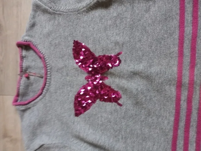 Pull 12 ans fille gris rose orchestra hiver chaud col rond neuf gris sequins papillon - photo numéro 2