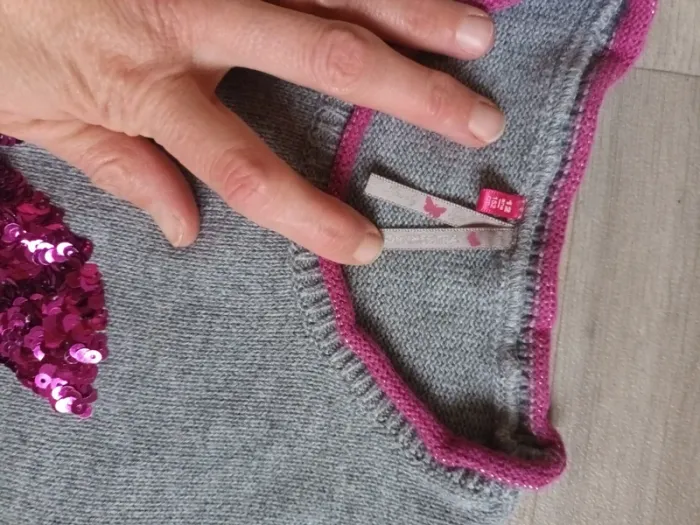 Pull 12 ans fille gris rose orchestra hiver chaud col rond neuf gris sequins papillon - photo numéro 3