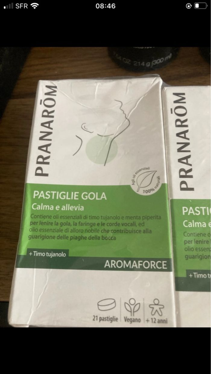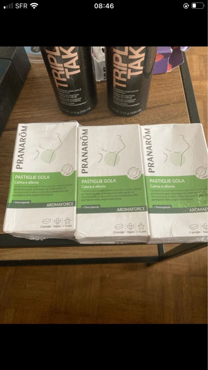 Trois. Boîtes de pastilles pour la gorge.