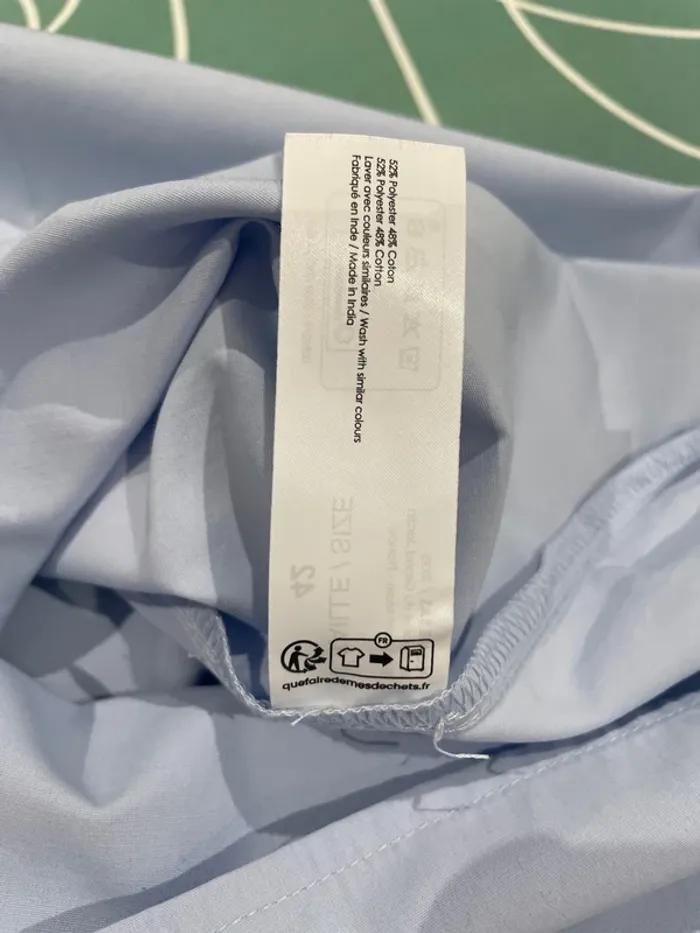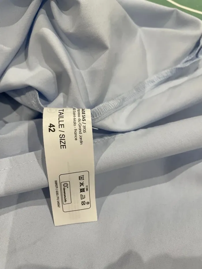 Coupe ample. Largeur entre les épaules 43 cm, entre les aisselles 54cm, longueur 65 cm.