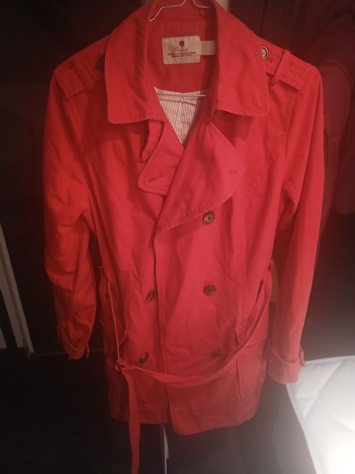 Veste longue avec ceinture beaucoup portée mais reste en bon etat