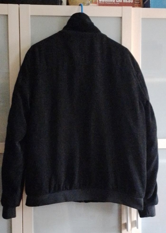 Marque top studio, l'écusson porte des marques d'usures voir photo. Doublé chaud couleur gris interieur et noir exterieur, resserrage élastique aux poignets Poches à pression devant et une poche classique intérieure poitrine Fermeture zip Longueur 76cm, largeur épaule 50cm