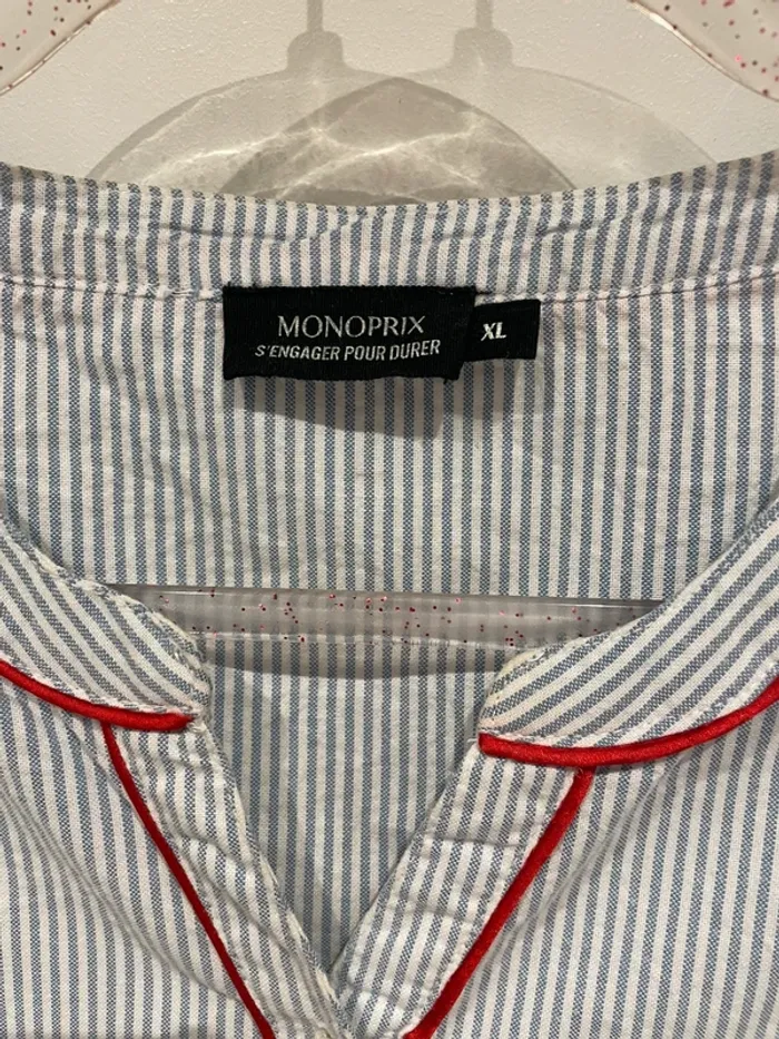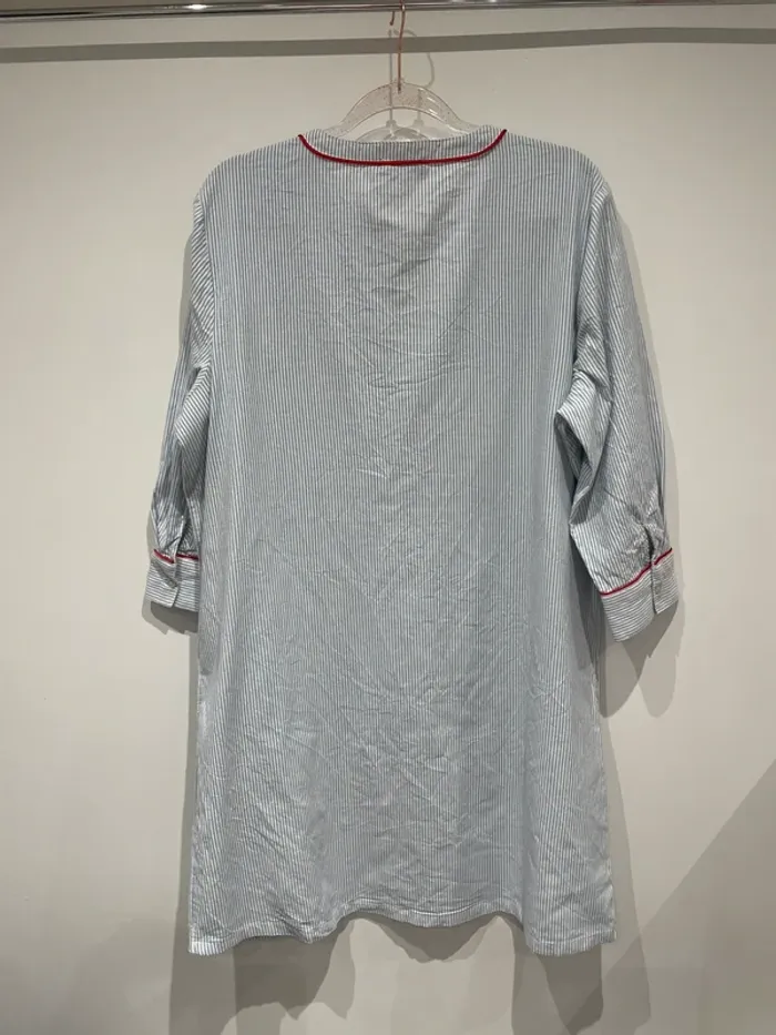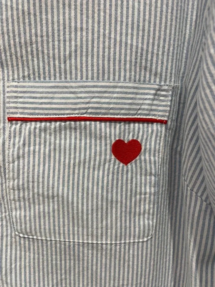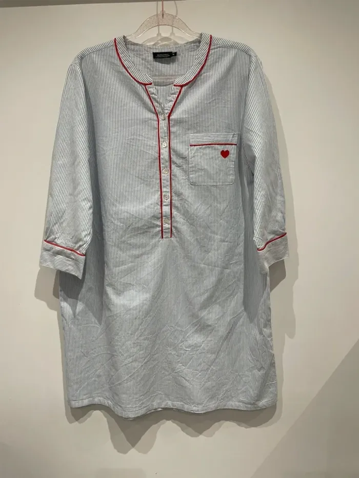 Chemise de nuit rayée 100% coton avec broderie coeur. Manches 3/4. Porté 1 fois seulement. Largeur entre les épaules 45cm, entre les aisselles 60cm, longueur 93cm.