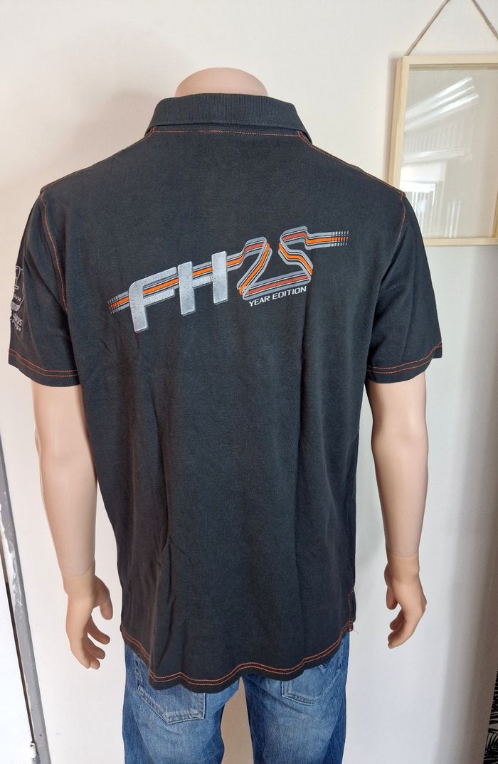 Bonjour, ce polo Volvo est un basique efficace pour un look décontracté au quotidien ou pour les passionnés de la marque. Il arbore des détails soignés comme des surpiqûres orange contrastantes et des logos brodés liés à l'univers du transport (Brochat, Relais Poids Lourds). Le dos présente l'inscription "FH25 Year Edition", soulignant son aspect collection. ​Fiche technique ​Style : Sport / Professionnel / Automobile ​Coupe : Droit ​Sexe : Homme / Men ​Taille : L (conforme) ​Mesures à plat ​Aisselle : 56 cm ​Longueur : 71 cm ​Matière ​Coton biologique ​État ​Bon état. À noter : une légère trace d'usure avec un effet délavé au niveau du ventre (voir photos). ​📦 Bloc Pro : Expédition 24/48h et réductions sur les lots. ​#Volvo #Trucks #Automobile #Polo #Menswear #Homme #Sportswear #Workwear #FH25 #Collection #Transport #Basic #GrisAnthracite #OrganicCotton #CotonBio