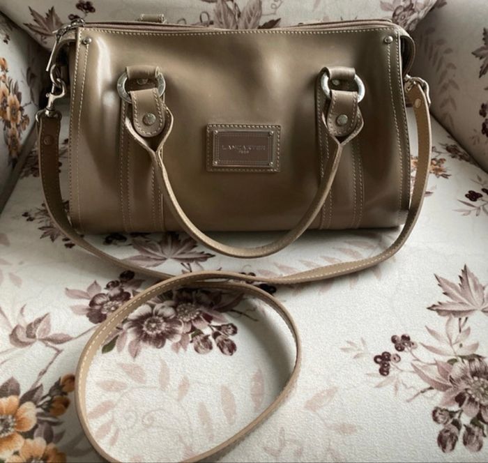 Sac Lancaster en bon état avec quelques signes d’usure au niveau de la poignée devant et derrière quelques taches en dessous du sac peut-être porté à la main ou à l’épaule et housse de protection