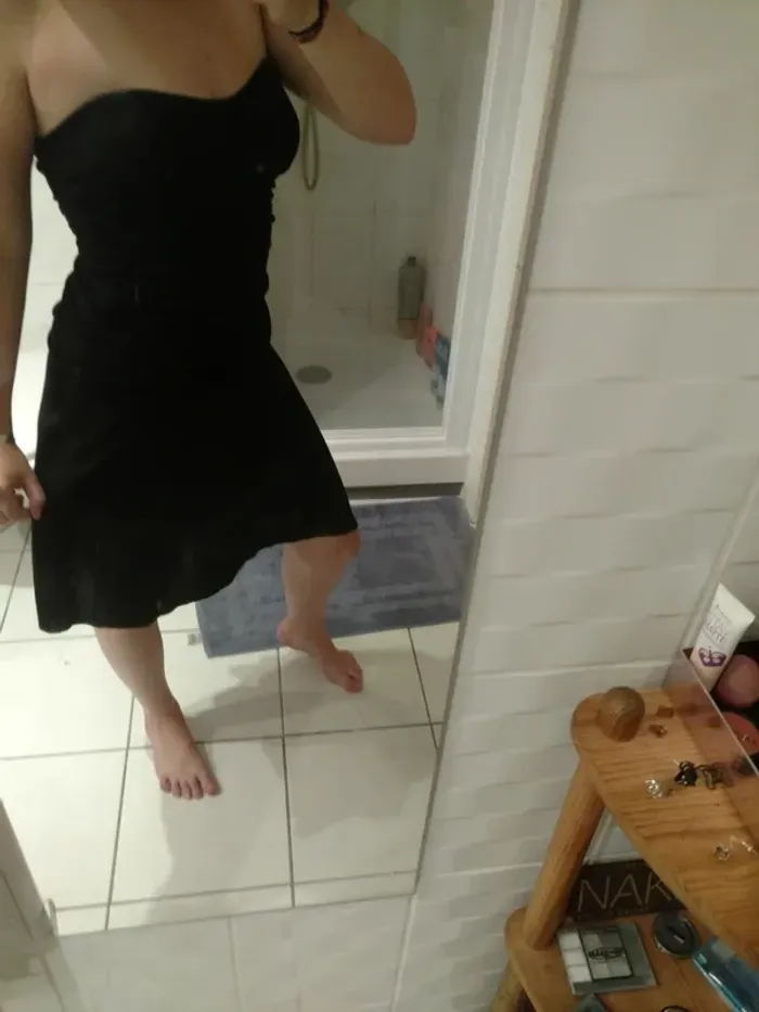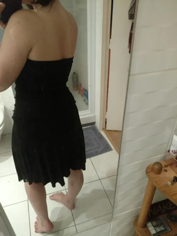 Robe noir bustier cache cache. Rembourrage a la poitrine permettant de ne pas mettre de soutien gorge. Portée 2 fois.
