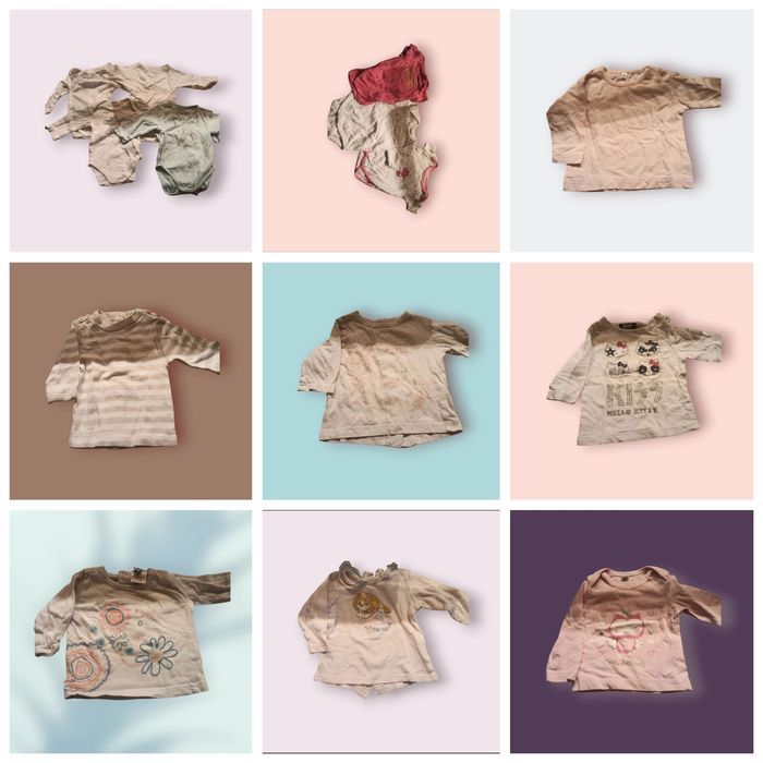 Lot de vêtements fille 1 mois comprenant : 1 manteau 2 en 1 4 gilets zippée 4 pantalons 7 body 7 Tshirt manches longues 2 combis ( 1 été 1 mi saison ) 1 tunique 1 ensemble chaud hiver 3 pyjama ( 1 hiver et 2 mi saison ) Les vêtements on certe été porté mais en très bon état 3 € le lot ( 30 articles )