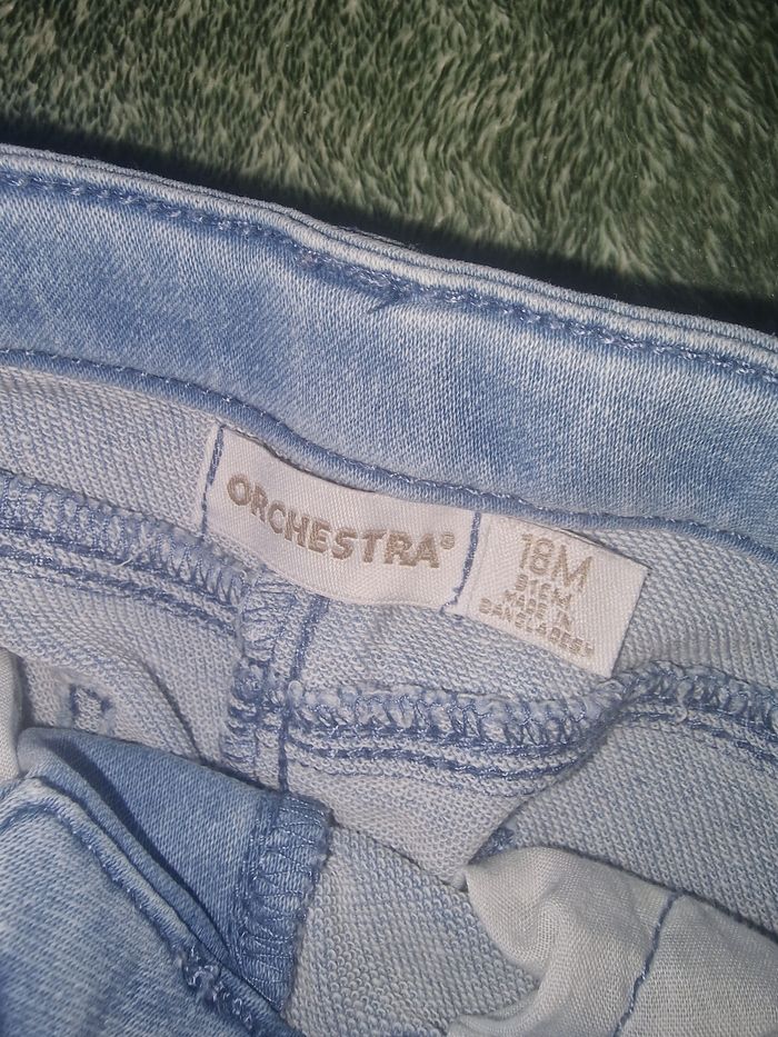 Joli jean bleu clair de chez Orchestra Taille 18 mois réglable a la ceinture. En tres bon etat.