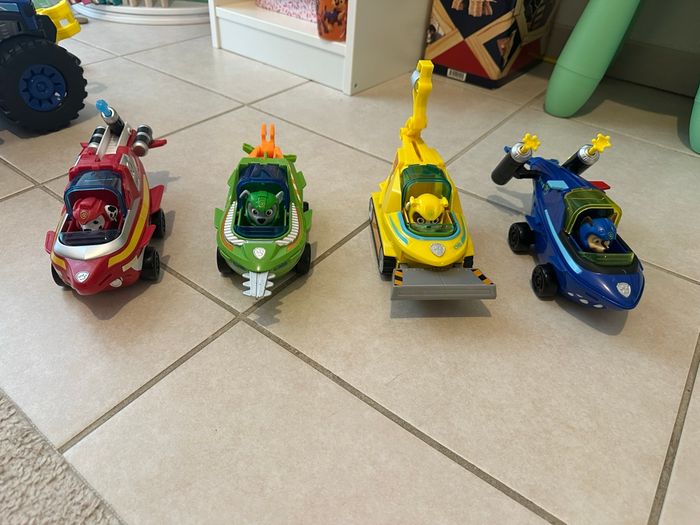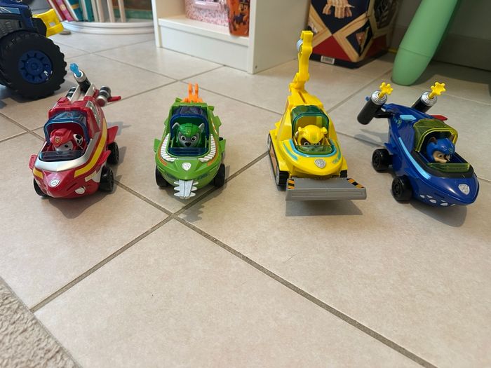 Lot 4 véhicules pat patrouille de l’eau ! Super état Lance missiles sur chase et marcus