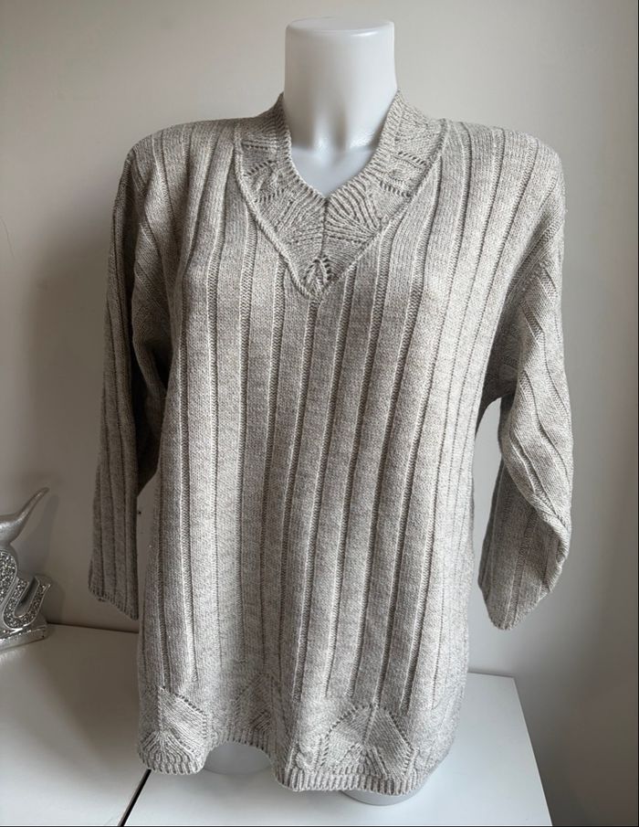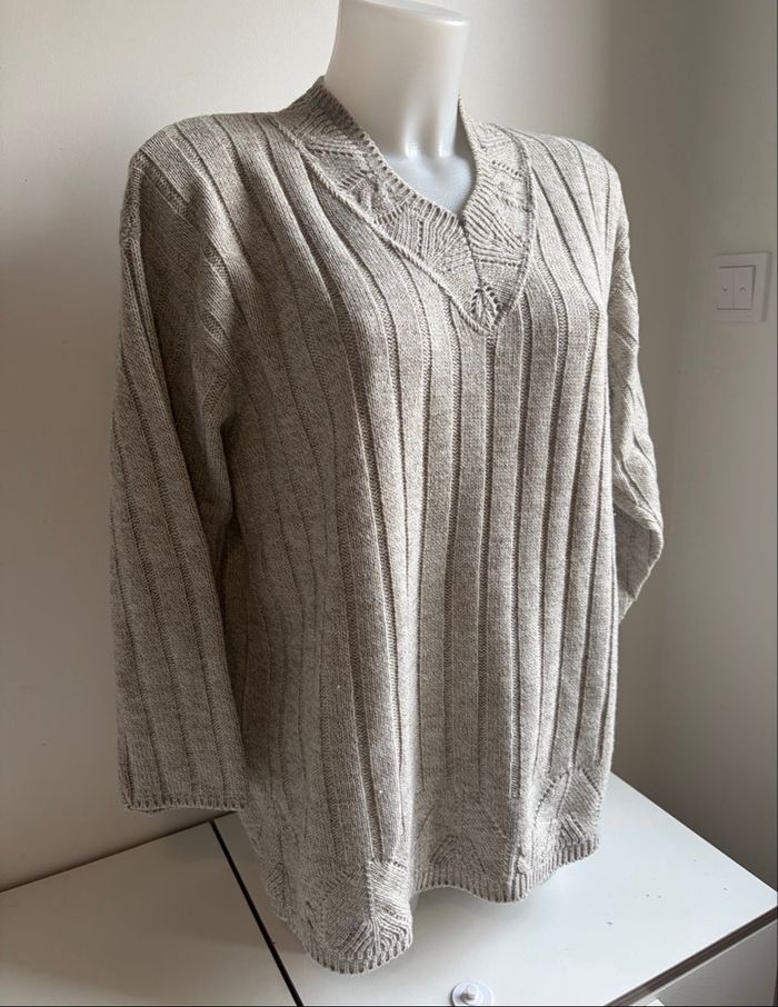 Pull beige côtelé col V Taille 40 - photo numéro 5
