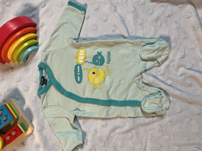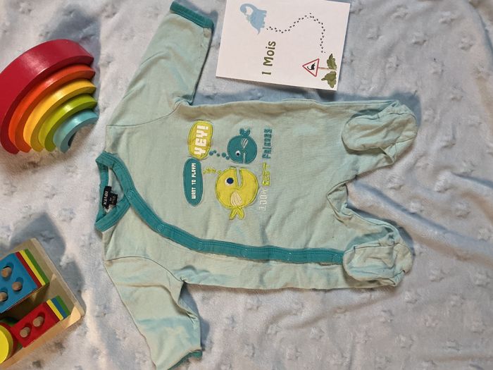 pyjama grenouillère en coton turquoise ouverture devant 1 mois kiabi - photo numéro 1
