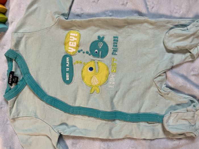 pyjama grenouillère en coton turquoise ouverture devant 1 mois kiabi - photo numéro 7