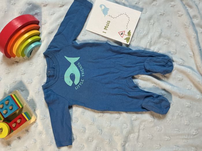 pyjama grenouillère en coton bleu impression devant in extenso 1 mois - photo numéro 7