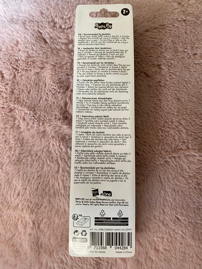 Je vends ce lot de 2 brosses à dents pour enfants de la marque Peppa Pig, neuves avec étiquettes. - Type de produit : Brosses à dents pour enfants - Marque : Peppa Pig - Couleur : Multicolore - Condition : Neuf avec étiquette N'hésitez pas à me contacter pour plus d'informations.