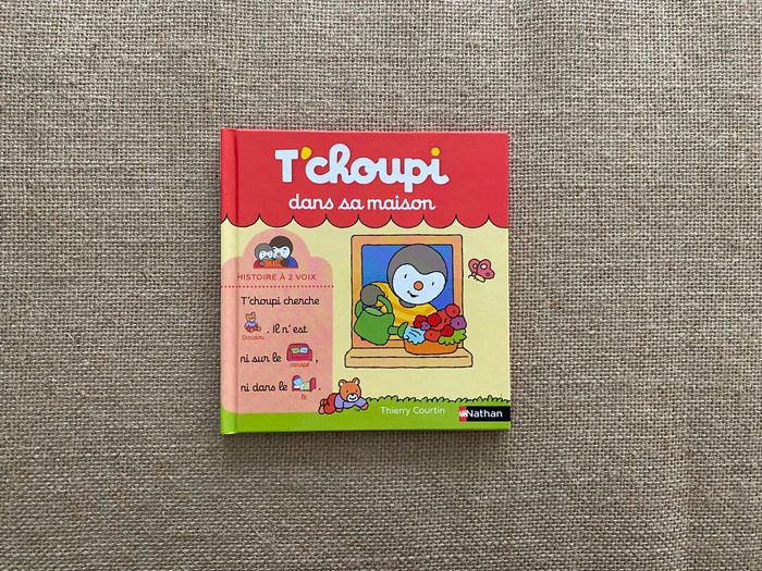 Retrouve T’choupi dans sa maison pour partager ses petites aventures du quotidien. Ce livre cartonné et coloré est parfait pour les tout petits qui aiment suivre les histoires simples et joyeuses de T’choupi. Histoire à 2 voix La maman ou le papa lit le texte et l'enfant le mot illustré. nathan44