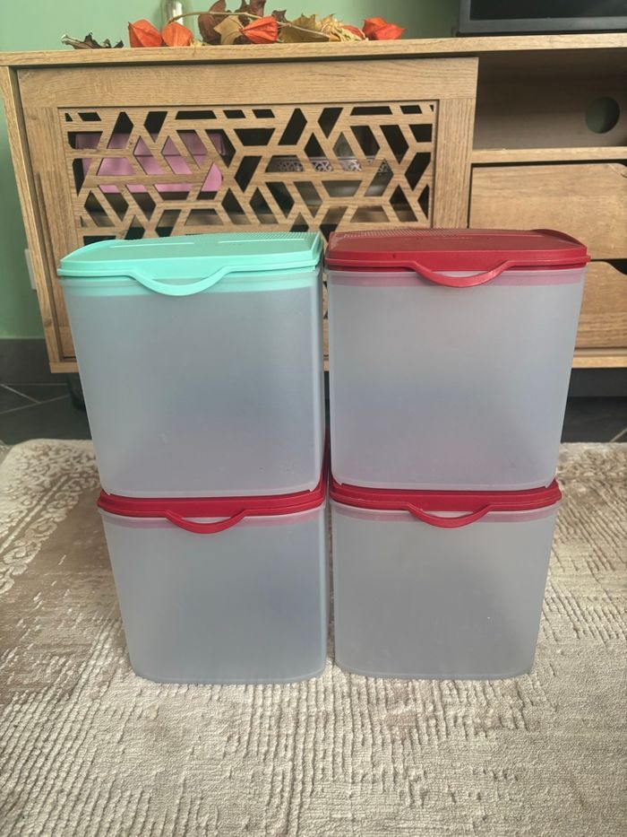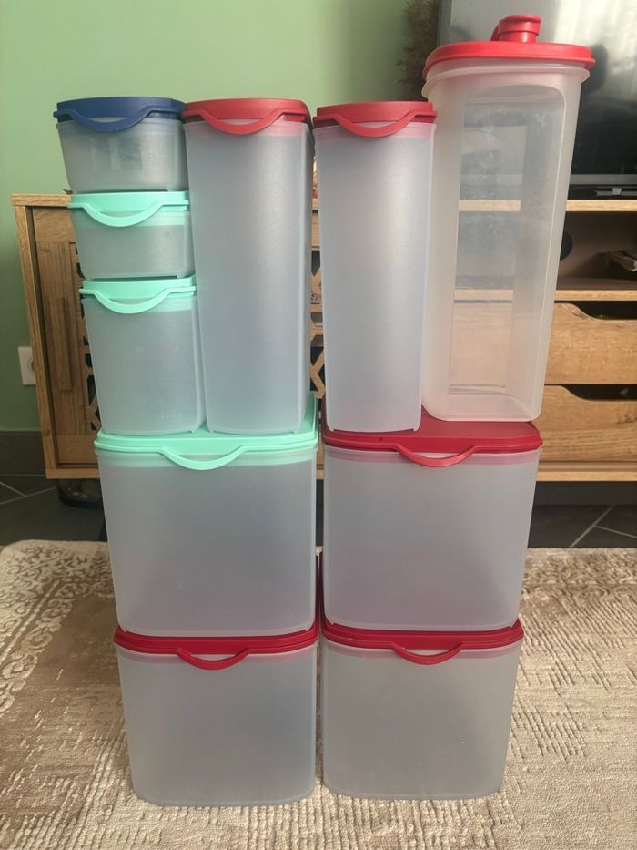 Lot 10 boîtes de stockage alimentaire Modulaire Pop. Tupperware. 4 grandes de 3 litres, 2 de 2 litres, 1 boîte à spaghettis ou autre, 1 de 1 litre et 2 petites. #organisationcuisine