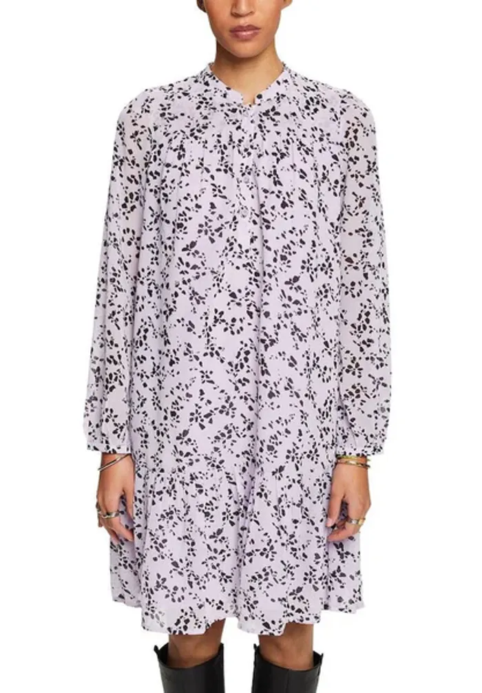 Robe Esprit pour femme. Couleurs violet et noir, au style élégant et moderne. Coupe féminine et confortable, idéale pour un look chic ou décontracté. Tissu doux offrant légèreté et confort au quotidien. Composition : 100 % polyester.