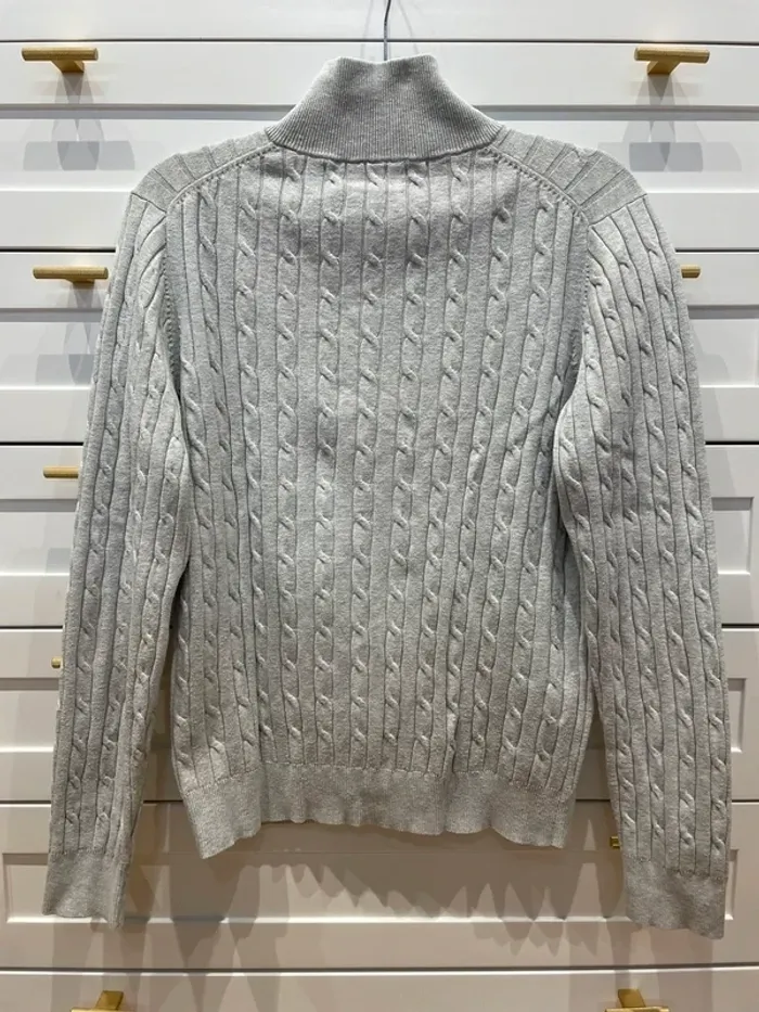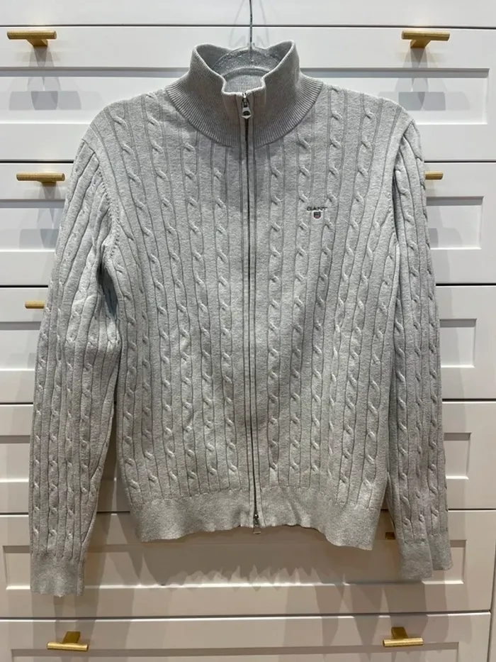 Cardigan torsadé full-zip en coton . Coupe droite. Porté peu. Largeur poitrine 46cm, longueur 62cm.