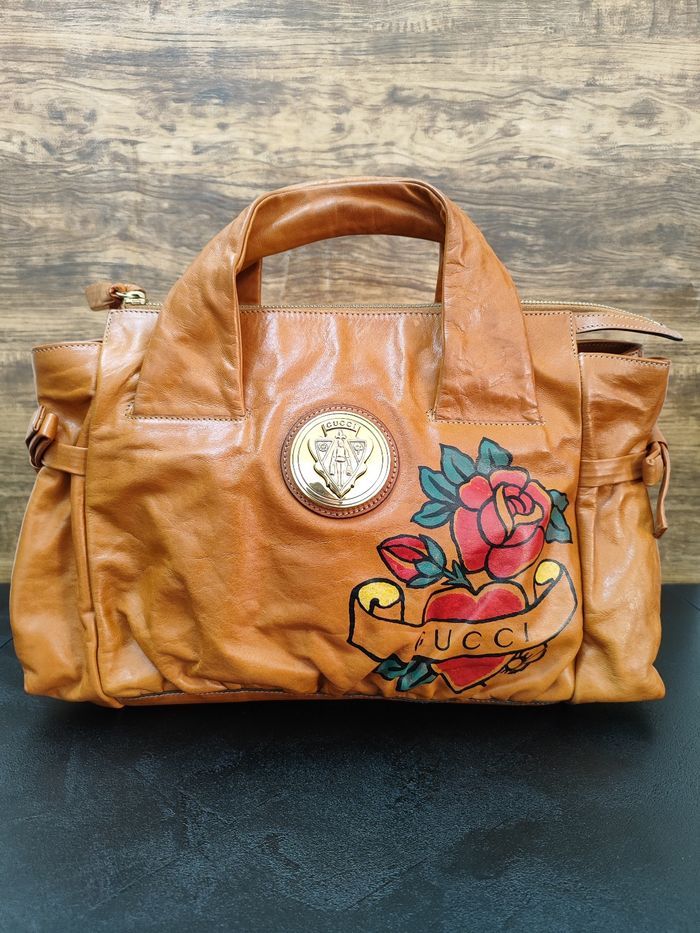 Bonjour, je vends ce très beau sac à main Gucci en cuir orange vintage.