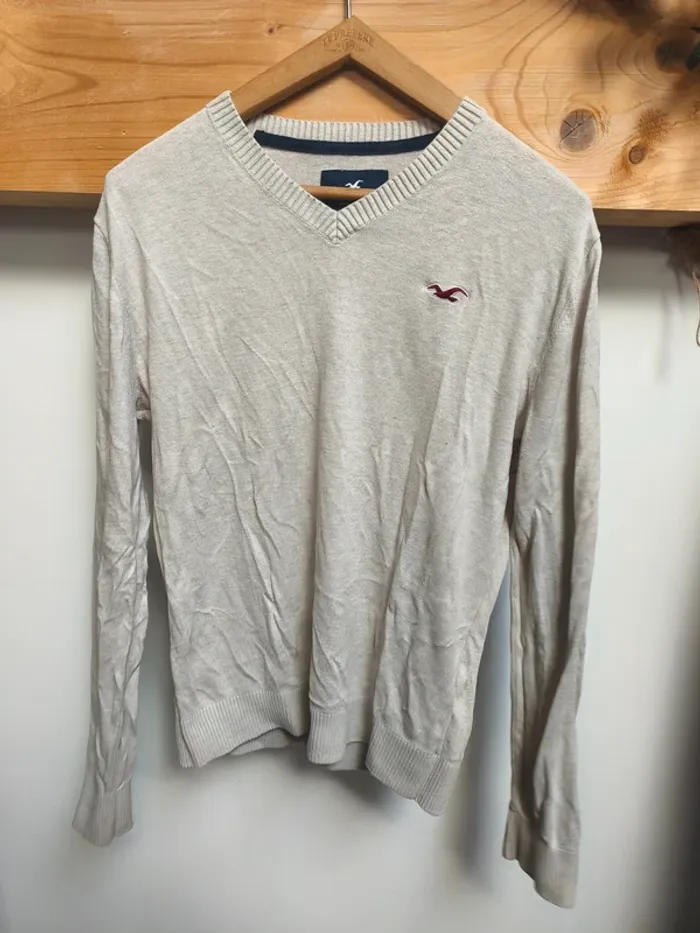 Pull col V Hollister beige - photo numéro 1