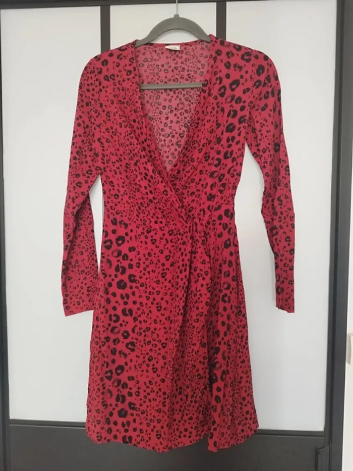 Robe courte, manches longues, forme portefeuille (faux noeud et jupe cousue, pas de risque d'ouverture). Imprimé léopard noir et rouge, parfait état taille 36. Marque Pimkie, mais parfait #dupe de marques style #thekooples ou #ikks. #dresswoman #leoprint #rock #pimkie #femme36 #shortdress #autumnfashion #fallwinter #leopardprint #redandblack #rockboho