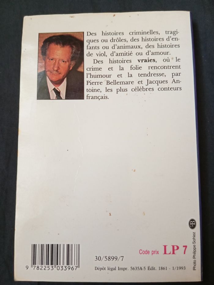 Je vends ce recueil d'histoires vraies de Pierre Bellemare et Jacques Antoine, intitulé "Histoires vraies 4". - Titre : Histoires vraies 4 - Auteur : Pierre Bellemare, Jacques Antoine - Genre : Policier - Éditeur : Le Livre de Poche Bon état N'hésitez pas à me contacter pour plus d'informations !