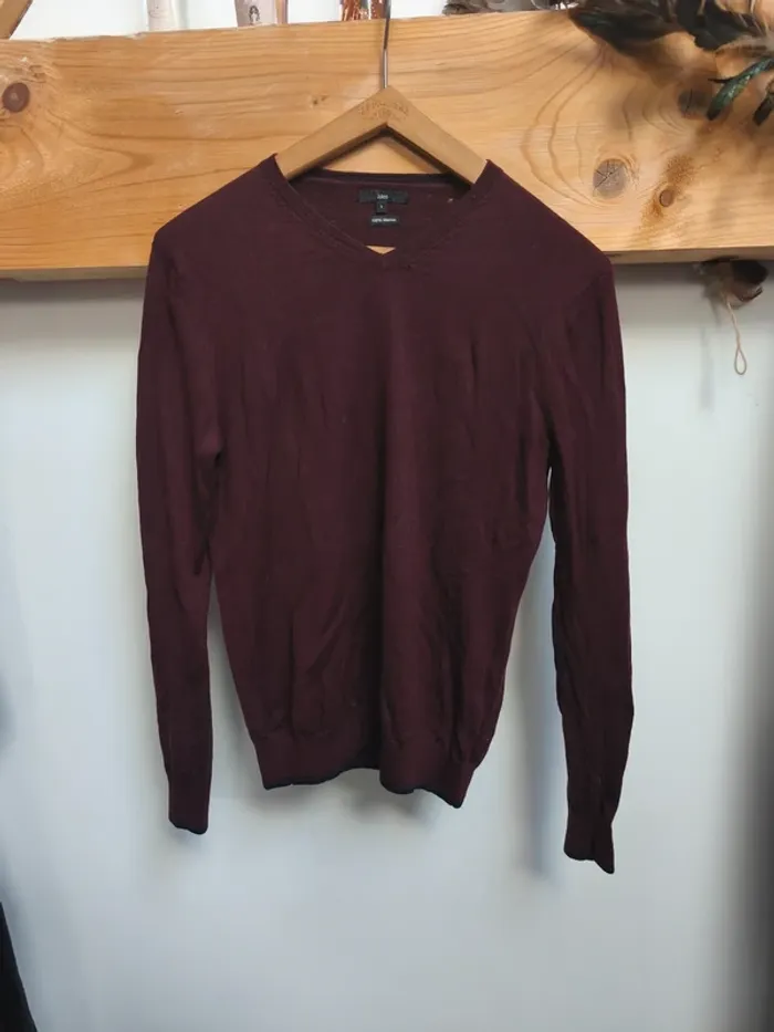 Pull fin col V bordeaux mailles fines bordeaux en laine mérinos - photo numéro 1