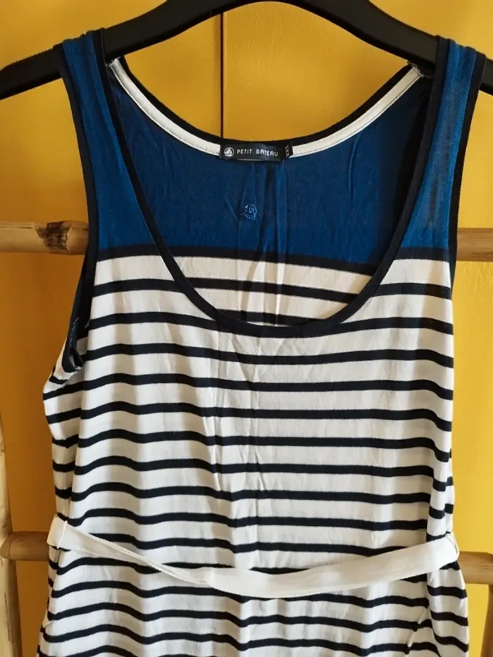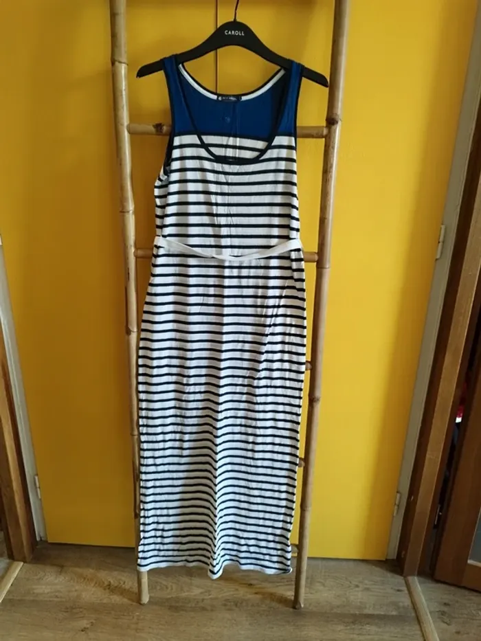 Robe longue, débardeur, rayée. Longueur chevilles (pour 1m60). Elle taille très grand, peut convenir à un 36/38. Parfait état #petitbateau #petitbateaufemme36 #robedebardeur36 #robedebardeur38 #robelongue #casualdress #summerdress #frenchbrand #marinière #robemariniere #zara #promod #camaieu #caroll #ikks