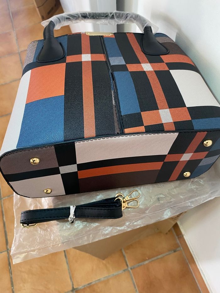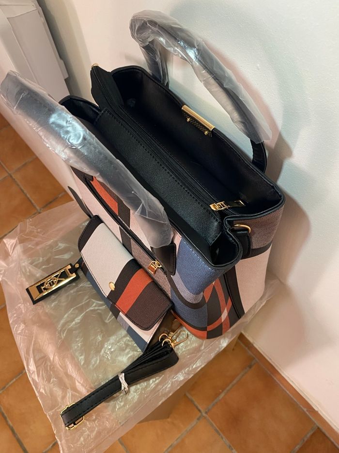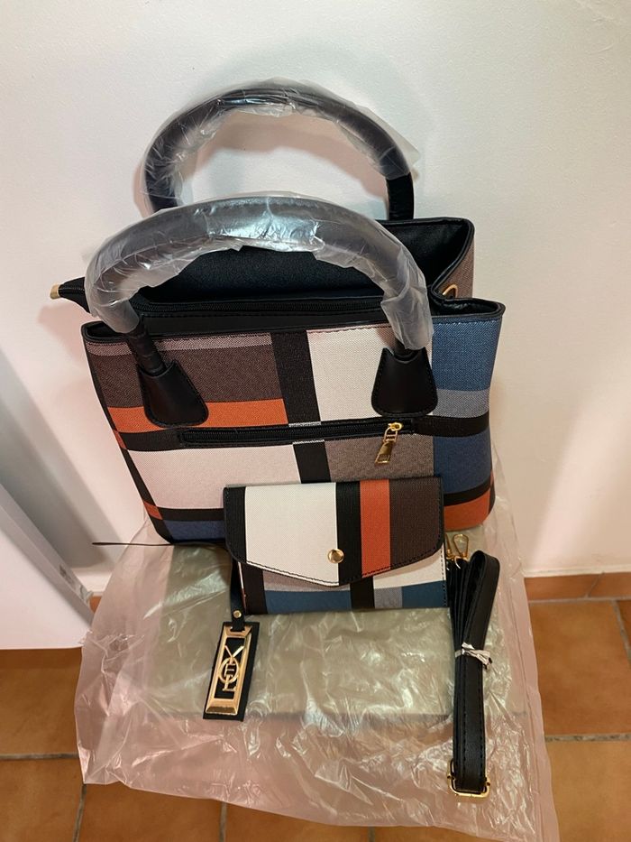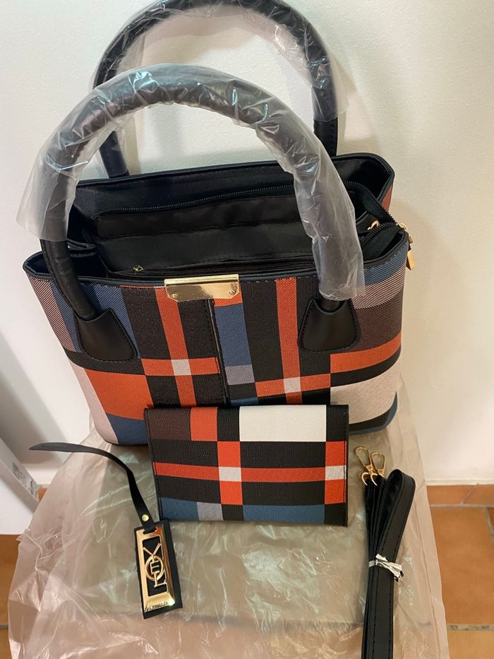 ✨ Description Élégant et pratique, ce sac à main pour femme au motif carreaux aléatoire noir allie style moderne et grande capacité. Il est idéal pour le quotidien, le travail ou les sorties. Livré avec un portefeuille assorti, il offre un ensemble chic et fonctionnel. 🔹 Caractéristiques • Dimensions du sac : Longueur 30 cm × Largeur 13 cm × Hauteur 23 cm • Matériau de doublure : Polyester • Fermeture : Zip sécurisé • Forme : Carrée • Rangements : • Poche intérieure zippée • Compartiment spacieux • Sangle : Incluse (porté main ou épaule) • Portefeuille inclus : • Longueur 16 cm × Hauteur 11 cm • État : Neuf 📍 Remise en main propre possible à Longueville (77650) 🚚 Envoi rapide et soigné possible 💬 Prix cohérent avec l’état neuf – négociation raisonnable uniquement. Merci