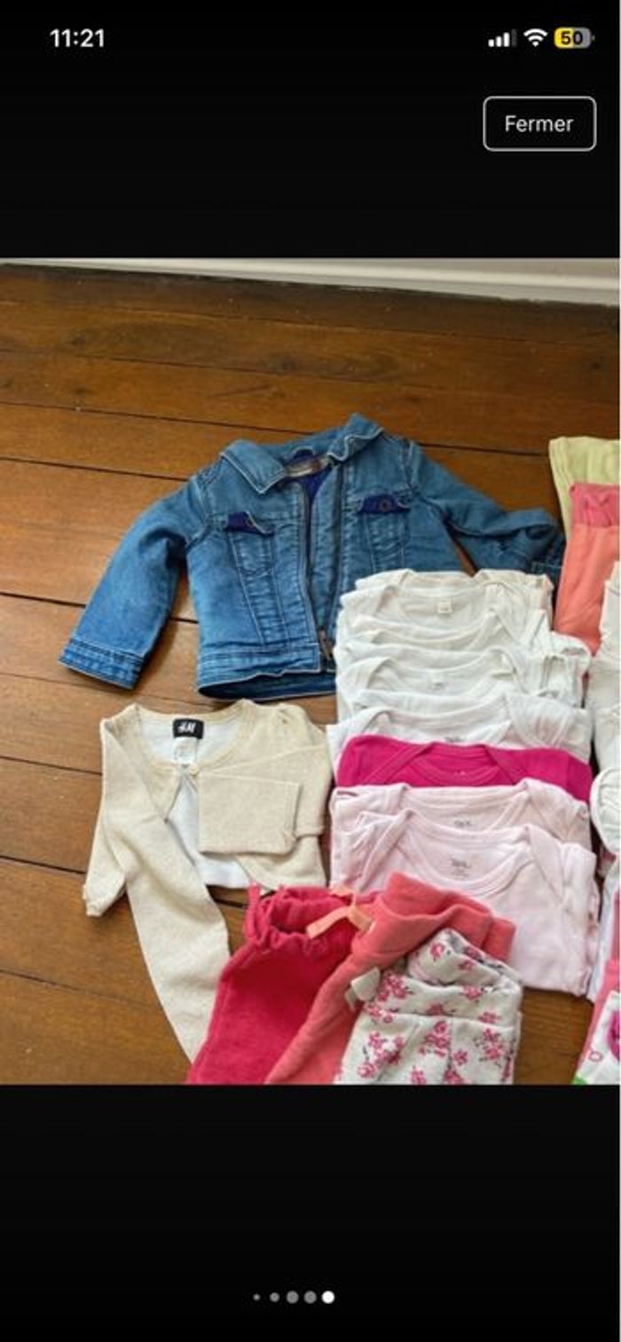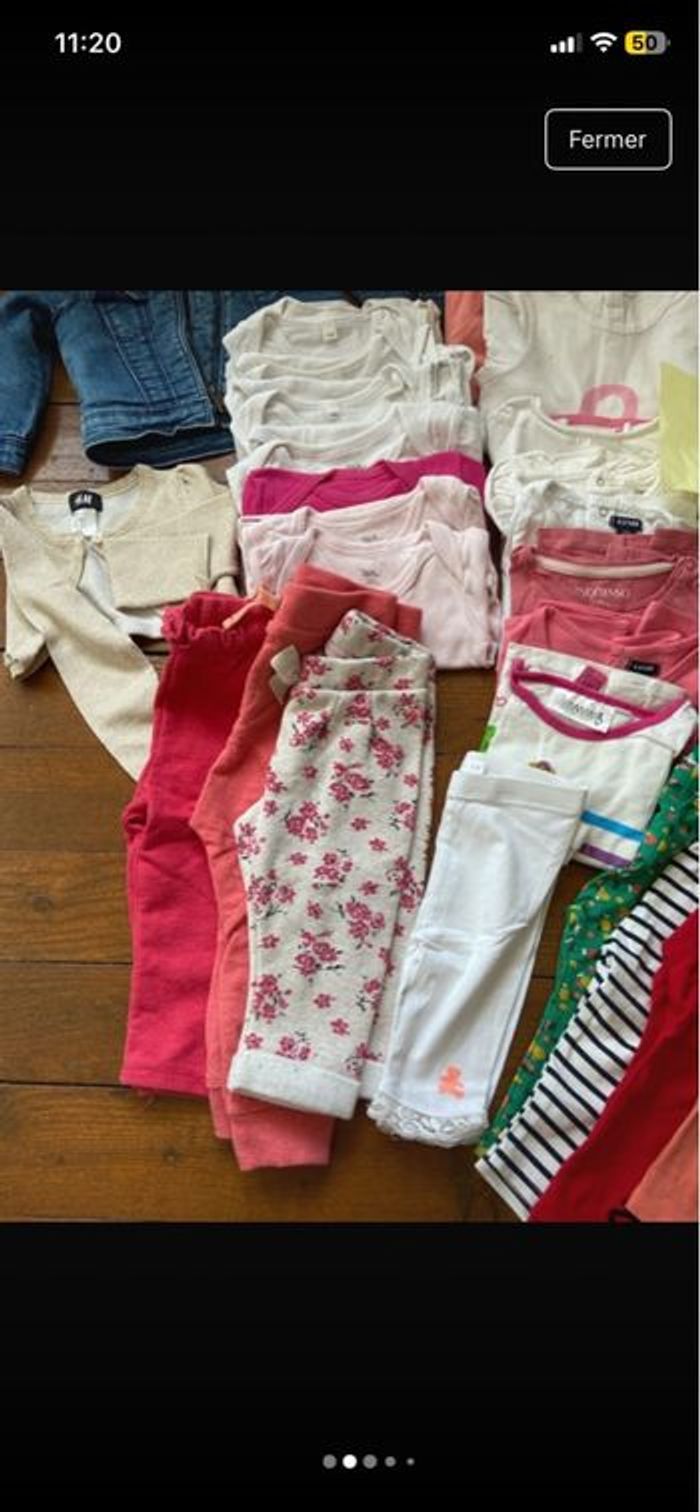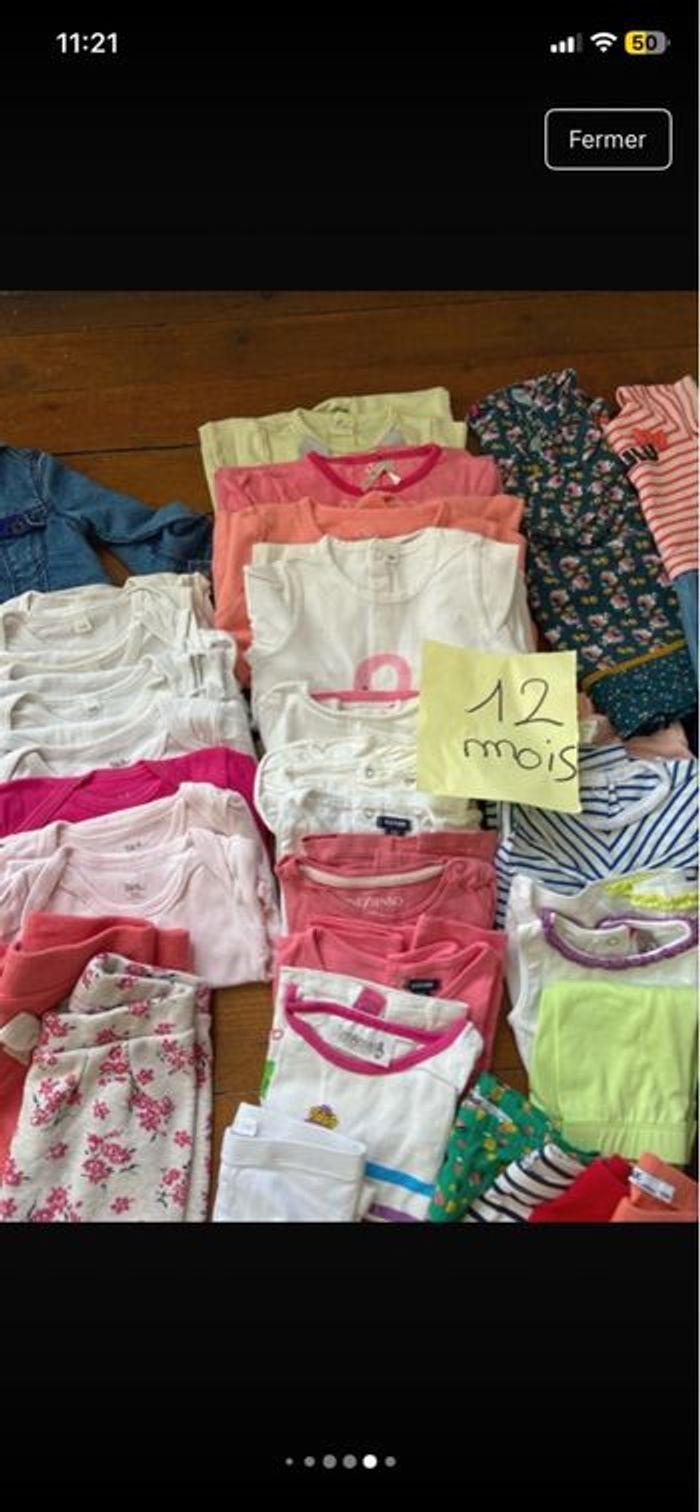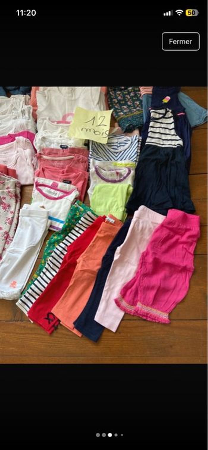 Lot vêtements 12 mois 11 pantalons / leggings 4 robes ( 1 avec manche ) 4 pyjamas fin 2 t-shirt mc 7 t-shirt ml 8 bodies ( 3 mc, 1 ml et 4 sans manches ) 1 gilet court 1 veste en jean légèrement molletonné