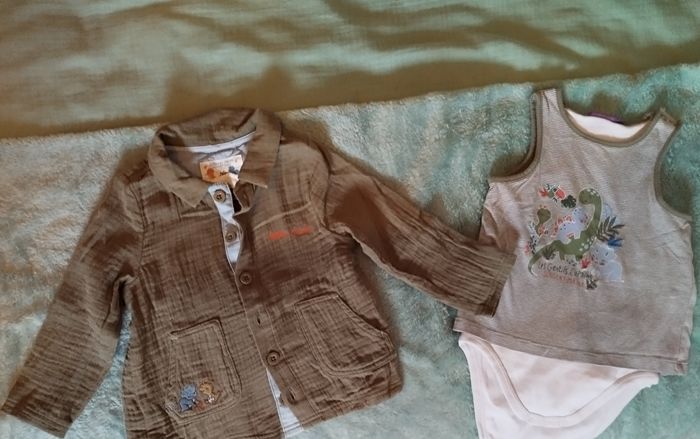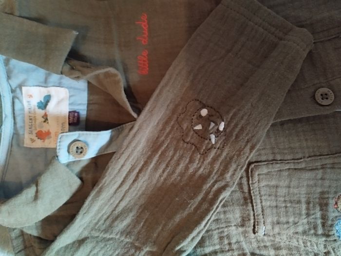Les gentils copains sergent major Haut manches courtes doublé body. Chemise kaki gaz de coton, état neuf. 18 mois
