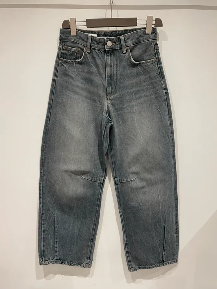 Jean baggy balloon, taille normale. Largeur a la taille : 38 cm, longueur : 103 cm. Le bas du jean présente une usure au niveau de l'ourlet, mais à part cela il est en très bon état. ⚠️ Suite à quelques mauvaises expériences je n’accepte plus des retours. Je compte sur votre compréhension.